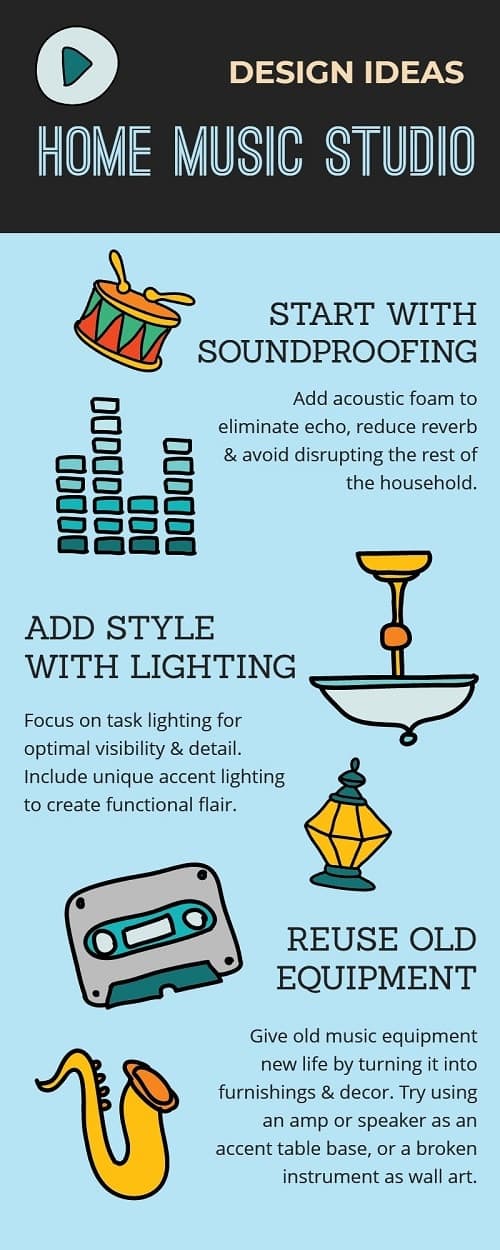 Do you have old instruments or equipment lying around? Why not turn them into unique decor by displaying them on walls or shelving in your home music room. You can even repurpose broken equipment into fun yet functional furnishings that will amaze any guest and add musicality to the place.